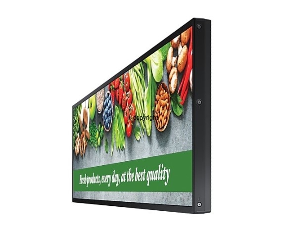Samsung LH37SHCEBGBXEN SH37C 37" to ultrasmukły, panoramiczny wyświetlacz digital signage zaprojektowany z myślą o dynamicznej komunikacji wizualnej w przestrzeniach komercyjnych. Dzięki unikalnemu formatowi 16:4.5, rozdzielczości 1920 × 540 pikseli (Full HD Stretch Display) i wysokiej jasności 700 nitów, ekran gwarantuje doskonałą czytelność i nowoczesny wygląd treści w każdym otoczeniu.